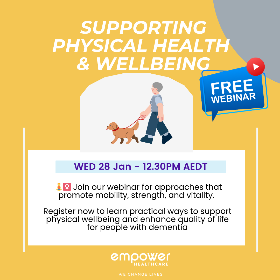 Living Well with Dementia Webinar – Supporting Physical Health and Wellbeing Living Well with Dementia Webinar – Supporting Physical Health and Wellbeing by 70 70 people viewed this event. SoMe Wellbeing Jan 2026 Register for event To register for this event please visit the following URL: https://us06web.zoom.us/webinar/register/WN_cDOWUZTAR0aMUxI5O5a-lQ → Date And Time 2026-01-28 @ 12:30 PM to 2026-01-28 @ 01:00 PM Registration End Date 2026-01-28 Location Online event Event Types Seminar or Talk Share With Friends Facebook Twitter Linkedin Xing Pinterest Living Well with Dementia Webinar – Support Through Nutrition Living Well with Dementia Webinar – Navigating changes