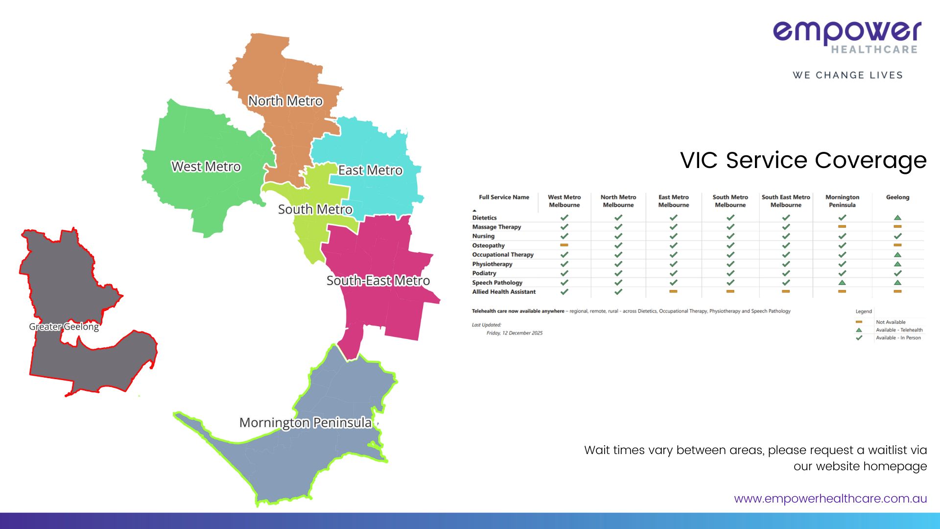 Scroll down to select your States Service Coverage – VIC, NSW, QLD, WA
